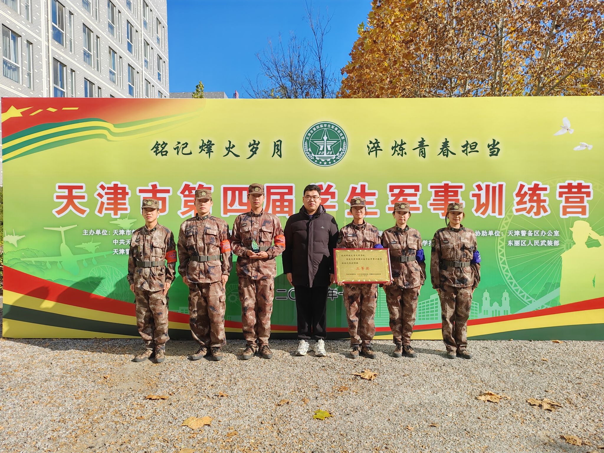 2025年11月13日至18日,由市委教育工委、市教委、市委宣传部、天津警备区战备建设局联合主办的天津市第四届学生军事训练营在中国人民解放军联勤保障部队工程大学举行,本届训练营以“铭记烽火岁月 淬炼青春担当”为主题,全市50所高等院校的300名学生参训。