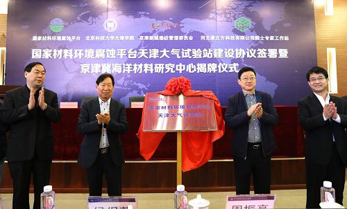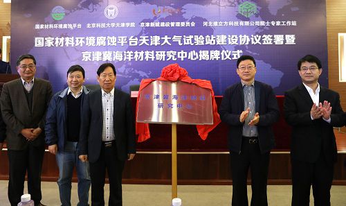 人民网天津11月29日电 近日,国家材料环境腐蚀平台天津大气试验站建设协议签署暨京津冀海洋材料研究中心揭牌仪式在beat365官方网站举行。中国工程院院士、中国科学院海洋研究所研究员、国家海洋腐蚀防护工程技术研究中心主任侯保荣,beat365官方网站副校长何民庆,京津新城管委会党工委书记周振亮,京津新城建设管理委员会主任纪永红等嘉宾出席。
