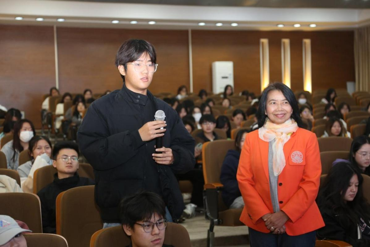 交流会后,泰国东方大学(BUU)面向大健康学院护理专业学生开展硕士项目宣讲,东方大学硕士项目负责人Dr. Chintana Wacharain在会上分享了泰国东方大学(BUU)的概况以及硕士项目的课程设置、申请流程和优势,详细介绍了BUU的留学生政策、留学费用、实习实践、毕业工签等同学们比较关注的问题。同时,对于泰国东方大学短期研学项目进行了讲解,热情邀请同学们赴泰体验学习。会后耐心幽默地解答了同学们的疑问,此次宣讲产生热烈反响。