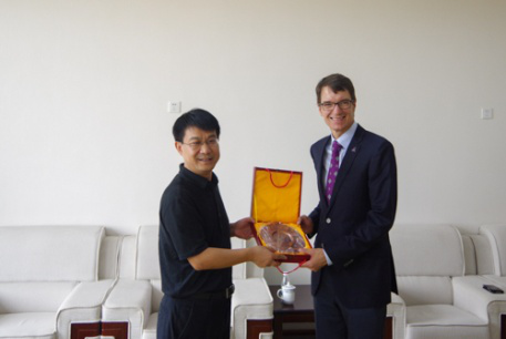 座谈结束后,王书记与杰夫校长互赠纪念品。随后杰夫校长一行人在相关领导陪同下参观了校园,并深入艺术系参观交流。