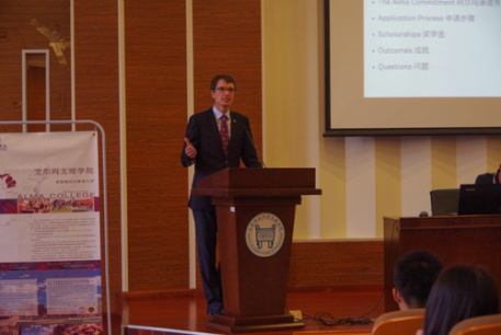 下午五点在beat365理工馆报告厅,杰夫校长举办了“中美文化交流”讲座,给与会同学生介绍了美国阿尔玛文理学院相关情况、美国的教育体系以及如何适应美国的学习环境。