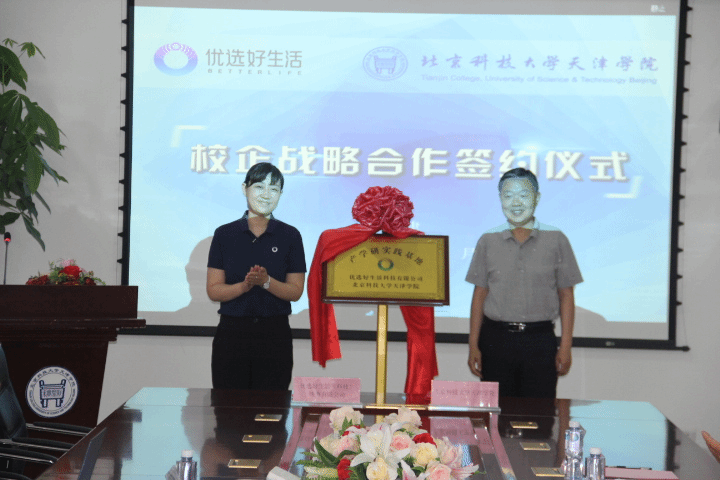 好生活科技集团人力行政总监李薇和学院党委书记丁煦生共同为产学研实践基地揭牌