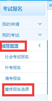 2. 进入“成绩管理”,选择“重修报名选课”