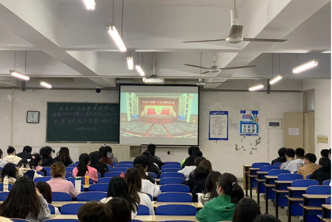 10月16日上午10时,中国共产党第二十次全国代表大会在北京人民大会堂隆重开幕,习近平总书记代表第十九届中央委员会向大会作了报告。天津市教委组织处副处长滑杰、学院领导班子、广大师生全程收看了党的二十大开幕会现场直播盛况,认真聆听了习近平总书记所作的工作报告。