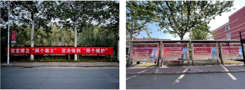 学院通过条幅、电子屏、橱窗、幕布等宣传党的二十大精神