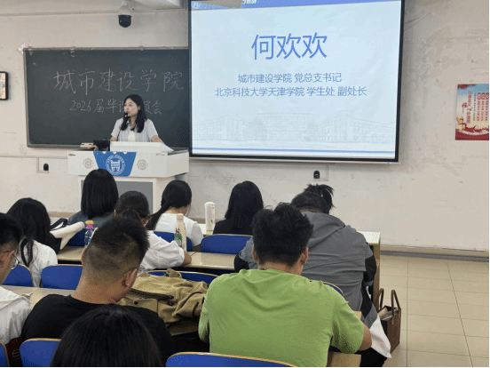 动员大会由城市建设学院杨建功和石晓娟老师主持,城市建设学院党总支书记何欢欢老师首先作动员讲话,她提醒同学们关注自身学业情况,强调毕业设计在大学阶段所处的重要位置,建议同学们把握住秋季招聘会的机会,多多投递简历进行面试,希望每一位同学都能够完成属于自己的高质量就业。