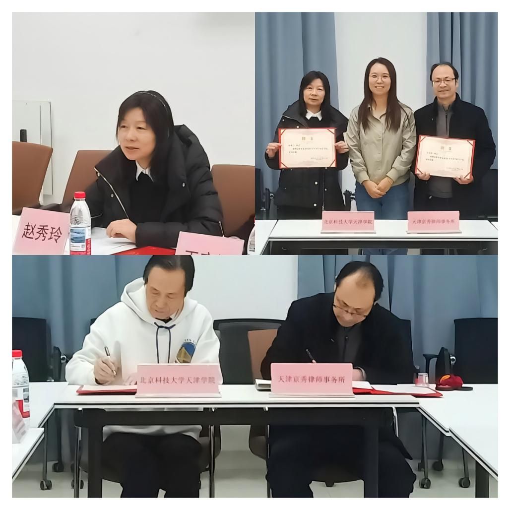 2025年12月3日13:30,法学院与天津京秀律师事务所实践基地建设签约仪式在教师发展中心隆重举行。法学院院长朱京安、法学院党总支书记张莉、法学院实践教学指导中心主任刘国平、法学教研室主任李文一及王一然、唐秋香等教师代表出席活动。天津京秀律师事务所主任赵秀玲、专职律师王京涛出席签约。