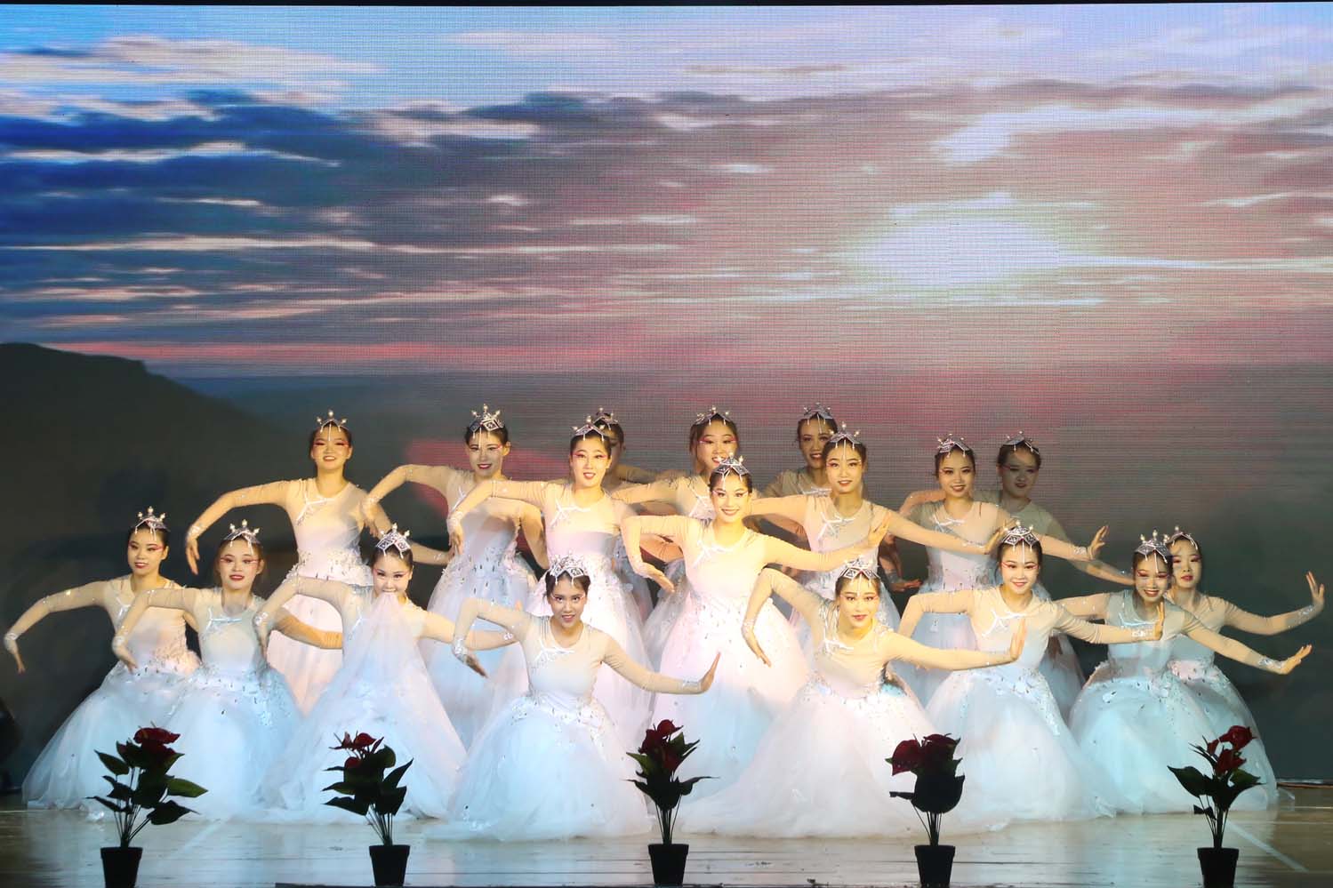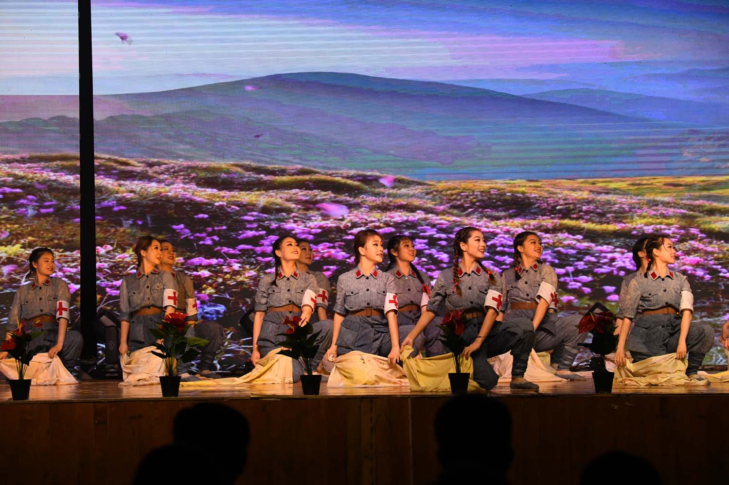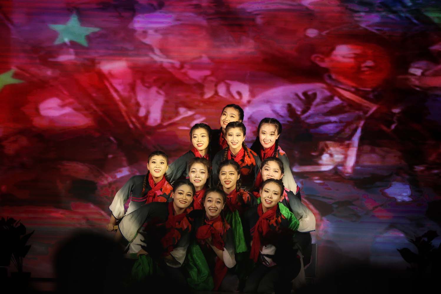 由舞蹈系教师姜楠指导的群舞《映山红》,优美的旋律表达对红军的热爱,深情的舞姿展现对英雄的崇敬。