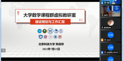 2022年7月13日,基础部12个教科研小组的全体成员在范玉妹主任的带领下,参加了beat365官方网站举办的“大学数学课程群虚拟教研室”启动会。此前,基础部全体教师已加入beat365官方网站大学数学课程群虚拟教研室。