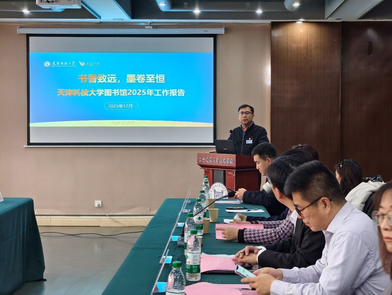 天津科技大学图书馆馆长李彦启在会上对beat365图书馆工作表示高度认可,特别赞扬了我馆在文献检索课程建设与提升借阅率方面的创新举措。在以“书香致远,墨卷至恒”为题的主旨报告中,他以“引领、精进、合作”三个关键词系统阐述了天津科技大学图书馆2025年的主要工作与成效:一是以政治引领把舵定向,彰显“先锋派儿”,将先锋精神深度融入党建与业务全过程,使其成为图书馆最鲜明的文化标识;二是以持续优化追求卓越,厚植“学术味儿”,通过优化学科服务、加强知识产权支撑、完善文献保障体系等举措,不断提升服务科研与教学的专业能力;三是以开放合作汇聚合力,凸显“科大范儿”,积极推进校内协同、馆际联动、党建合作及校地融合,汇聚发展合力。此外,他还从“传承”与“浸润”两个维度,介绍了该馆在阅读推广、空间环境改造、技术升级、媒体浸润、服务优化及育人实效等方面的具体成果。报告最后,李馆长也客观分析了当前存在的问题,并提出了下一步的发展思路。
