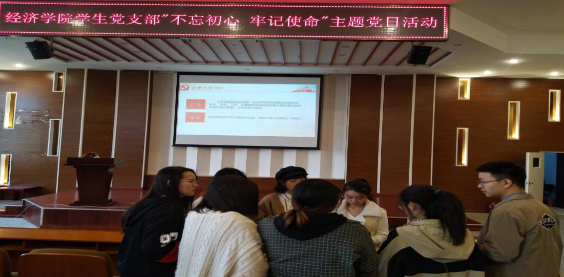 经济学院学生第二党支部于10月18日下午,举行了“不忘初心、牢记使命”主题党日活动。本次活动以“支部书记领学、支部党员分享学、全体党员共同学”的方式进行,主题聚焦、内容丰富,讨论热烈、动情深刻,达到了预期...